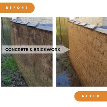 We carefully utilize high pressure only in the right circumstances to clean dirt, strip paint, concrete splatter from hard surfaces such as concrete/brick paths, driveways, garage floors, garden retaining walls, and more.